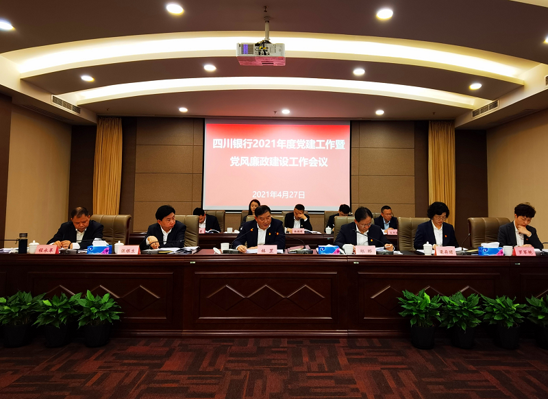 4月27日,四川银行召开了2021年度工作会议、年度党建工作暨党风廉政建设工作会议。会议传达学习彭清华书记在驻川金融机构工作座谈会议上的讲话精神和省纪委十一届五次全会、2021年度省国资系统党风廉政建设和反腐败工作暨警示教育大会精神,总结2020年工作,安排部署2021年重点工作。